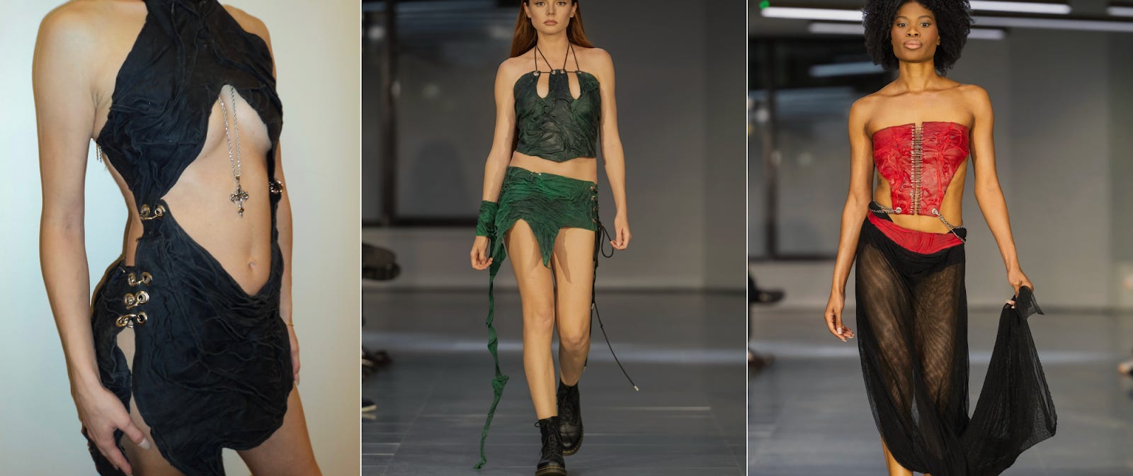 Wearing a flowing red and black thobe with a black leather harness from the collection, Iranian model Vesta Garakani said that “fashion means to be yourself and be free”.