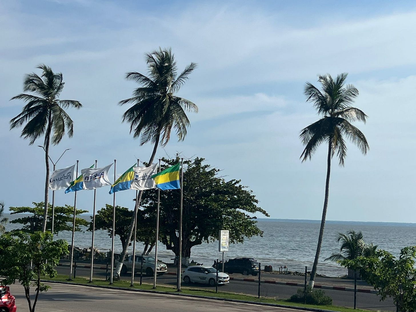 Welcome to Libreville, in Gabon - on the central African coast, bang on the equator and just about far enough away from the rest of the world to feel cut off from the main dramas driving the news cycl.e.