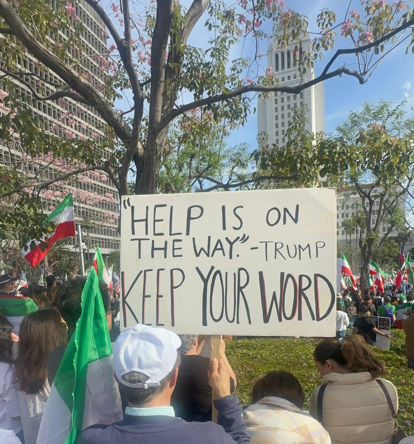 The stories of the women held in Evin prison just for refusing to wear hijab are more important now than ever: they laid the groundwork for the revolution we’re seeing today. I told NewsNation: ‘The Iranian people believed President Trump when he said help is on the way’. They now expect him to deliver - and today’s signs at the Global Day of Action rally in front of Los Angeles City Hall said as much. LAPD estimated over 300,000 people showed up.